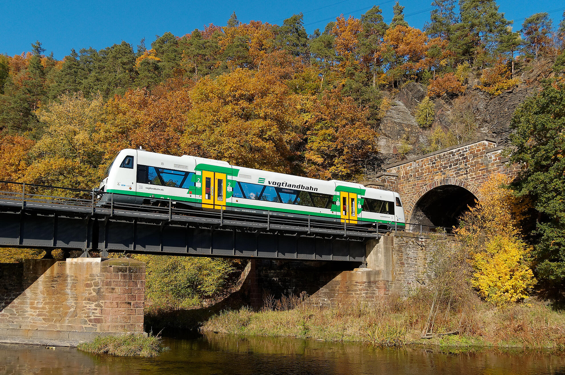 Entlang des Flusses verkehren zwei Linien der vogtlandbahn: