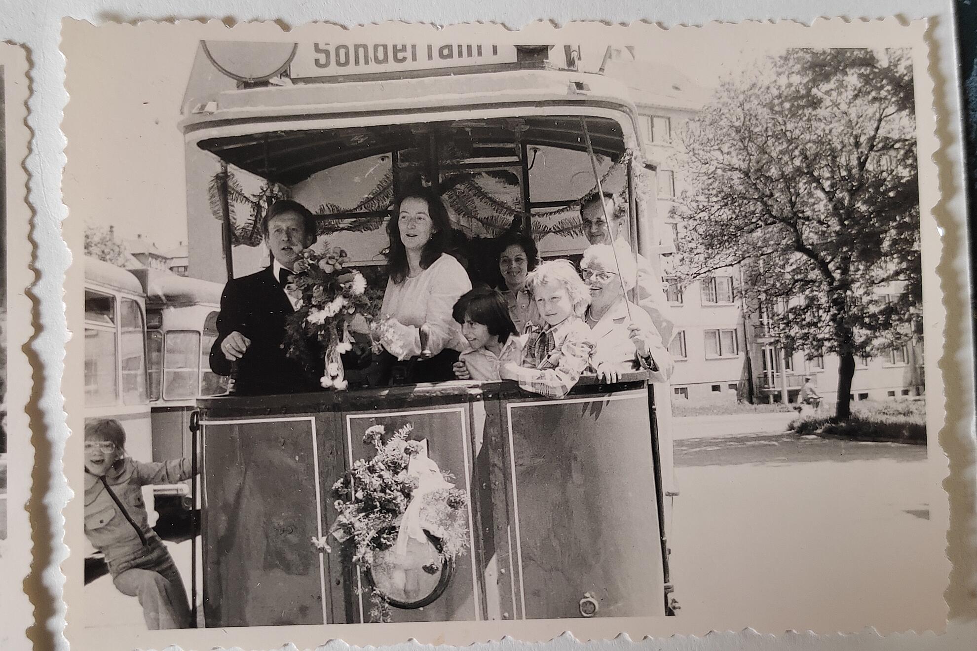 Die schönste Geschichte ereignete sich in eben jener Bahn „21“. Am Tag der Hochzeit mit seiner damaligen Verlobten, auch Straßenbahnfahrerin, wurden beide völlig überraschend mit der Straßenbahn „21“ abgeholt.