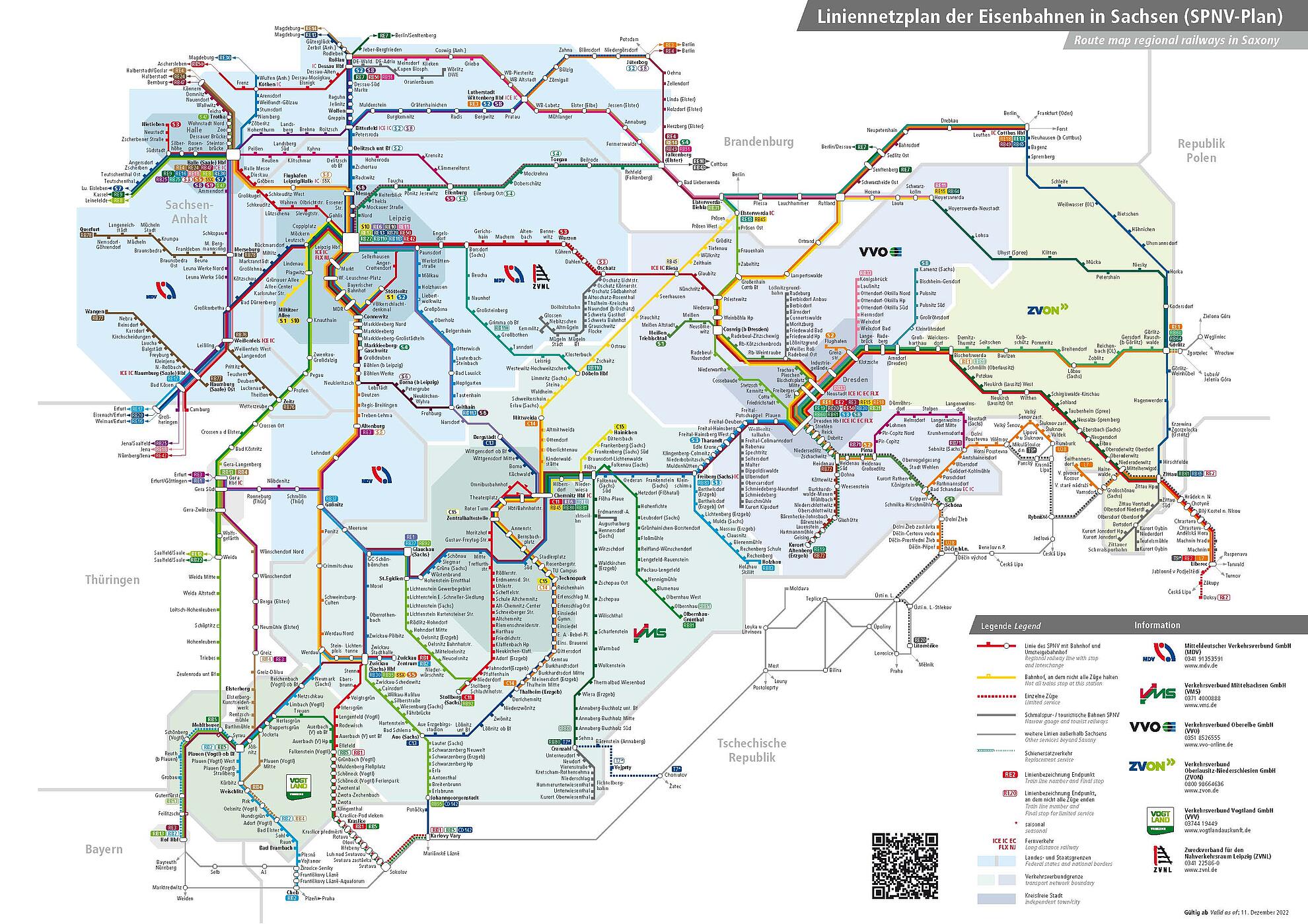 Die fünf sächsischen Verkehrsverbünde haben ihren gemeinsamen Schienennetzplan auf den neuesten Stand gebracht. „Eisenbahnen in Sachsen“ bietet einen Überblick über alle Bahnstrecken im Freistaat sowie Informationen zu Tarifen und Kontaktmöglichkeiten. Die kompakte Karte ist ab sofort bei allen Verkehrsverbünden und den Servicestellen kostenfrei erhältlich und hängt an Bahnhöfen und in den Zügen aus.