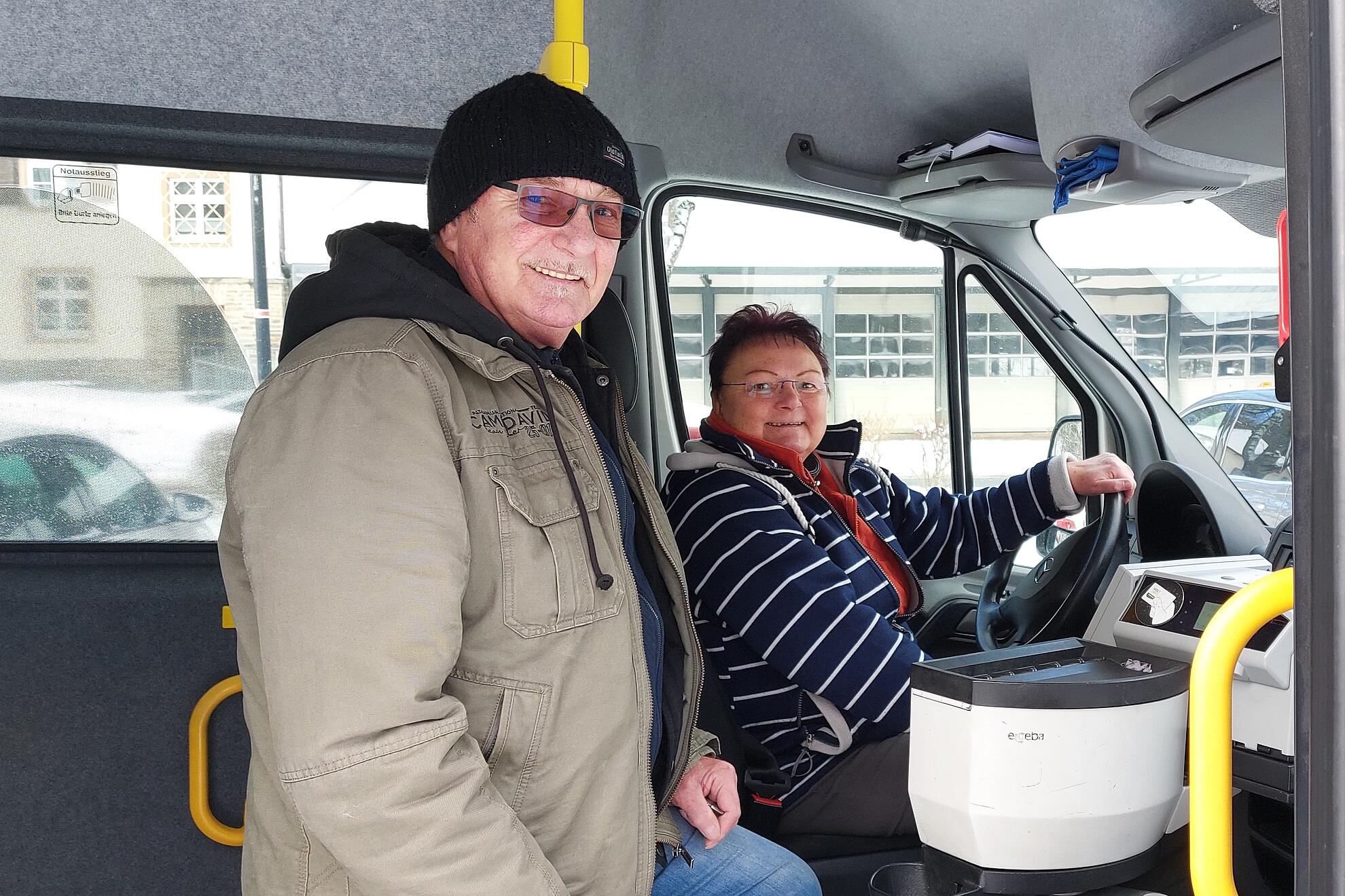 Bild 2: Die neue BürgerBus-Fahrerin Sabine Seidel mit Fahrerkollege Joachim Hendel.